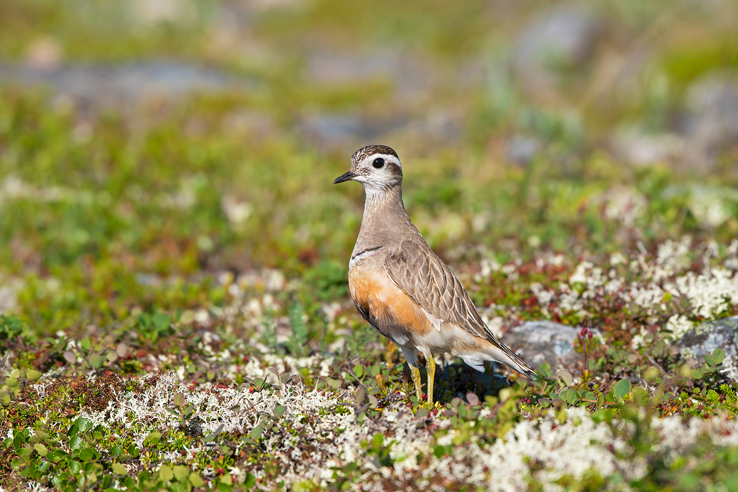 Практически дойдя до места начала поисков, я увидел за перевалом медведя! Михаил Потапыч был от нас на расстоянии пятидесяти метров! В голове крутились неоднозначные мысли, но руки всё же потянулись за фотиком. В это время мишка нас заметил и рванул наутёк. По итогу я успел сделать всего три кадра, первый из которых вы сейчас видите (два остальных – это уже попа косолапого). Немного выдохнув и придя в себя, боковым зрением я увидел на моховом одеяле тундры среди редких камней заветного куличка. Это был хрустан! И он был не один, а с целым выводком совсем ещё крошечных птенцов! Глава семейства притворялся раненым, чтобы отвести нас он своих малышей. Уже позже, я понял, что именно мишка нам помог найти заветную птицу, которая выдала себя, доблестно защищая потомство.